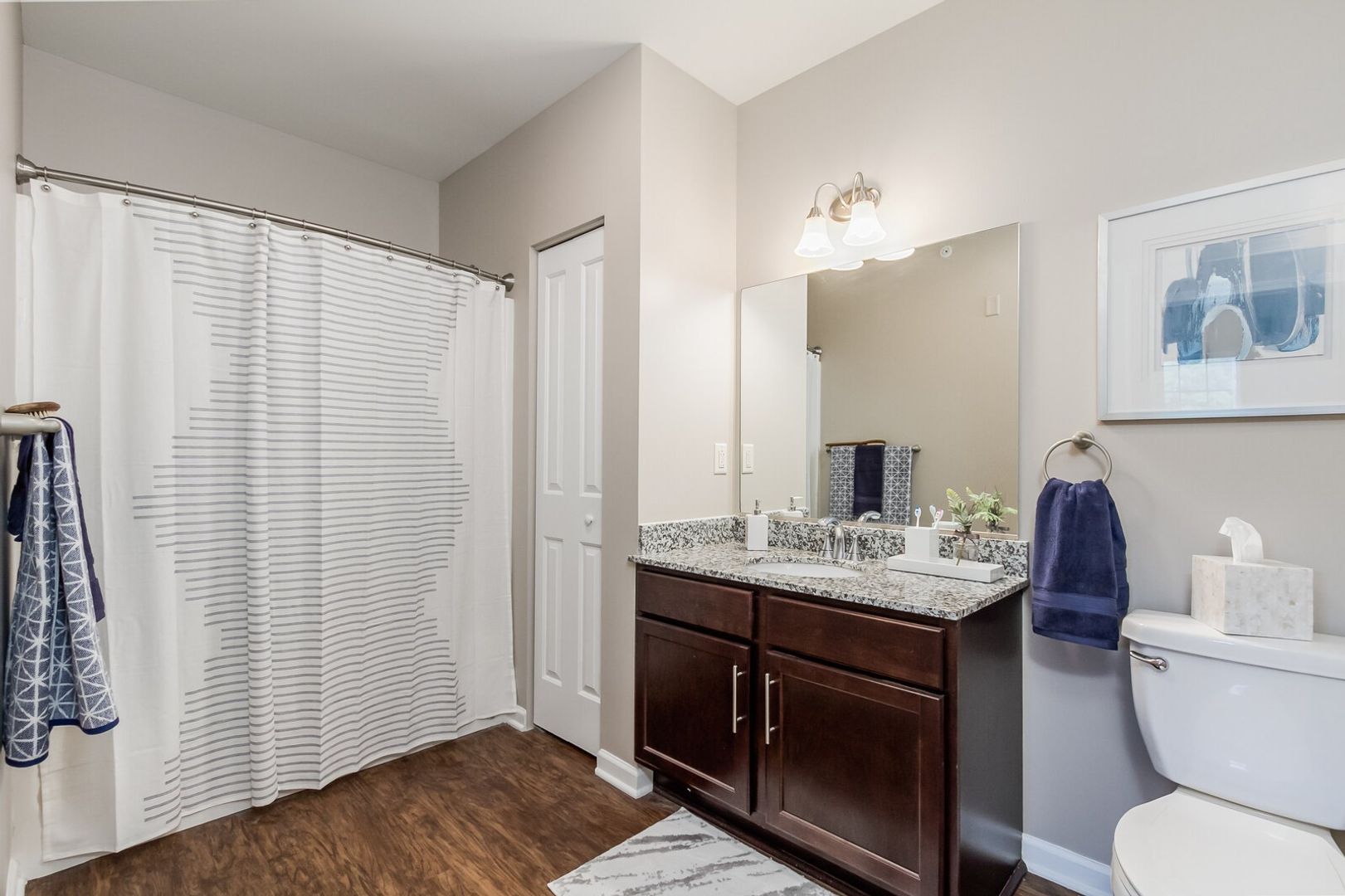 Make yourself at home in this beautiful, contemporary-designed two-bedroom, two-bathroom apartment home! Recently built in 2017, this unit features luxury vinyl tile flooring, granite countertops, breakfast bar, in-unit washer and dryer, master bathroom with his and hers vanities, spacious walk-in closet and personal patio/balcony. The subtle color palettes and use of natural materials create a living environment that is stylish, comfortable, and complementary to any decor!