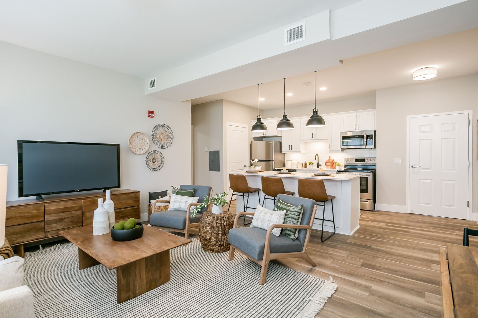 This newly-renovated two-bed, two-bath apartment features high-end appliances, a modern farmhouse inspired design, and neutral finishes to compliment any personal style. You’ll love the open design, chef-inspired kitchen equipped with stainless-steel appliances and kitchen island, modern pendant lighting, and full-size washer and dryer.