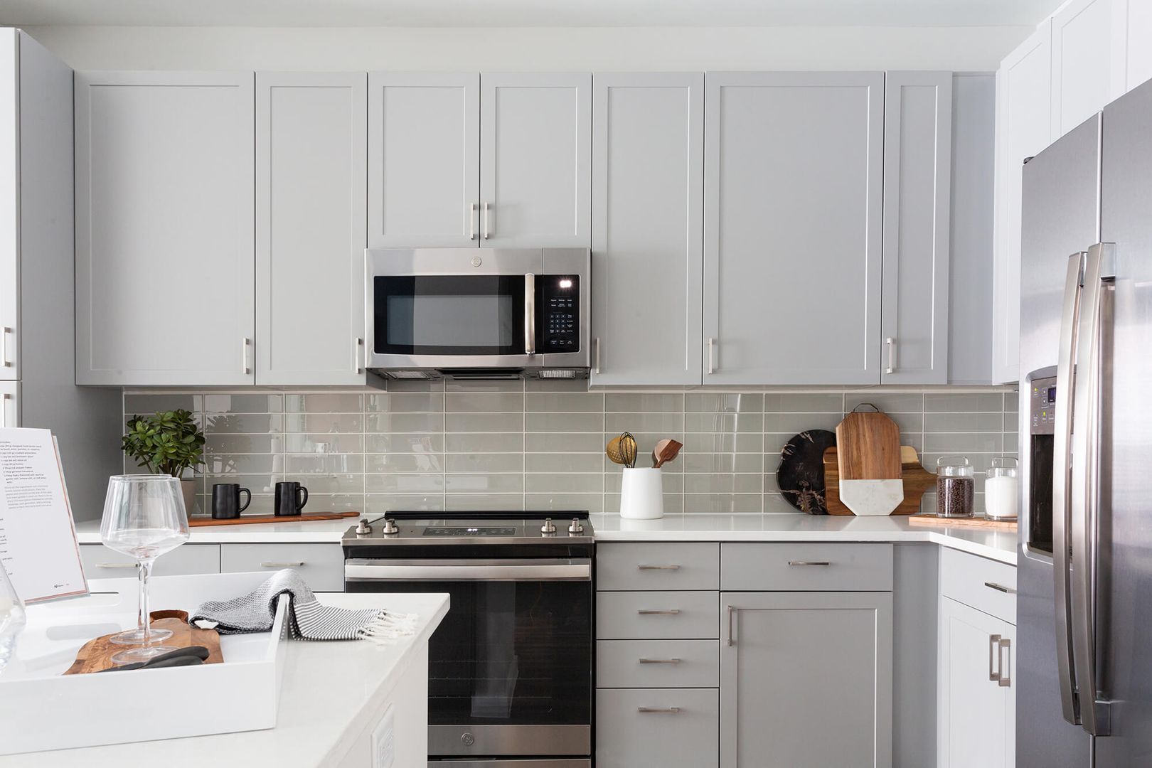 Our property features gorgeous community spaces for you to relax, work or play in. Lounge by our resort-style pool or host a game night with friends in the Virtual Sports Center. Brainstorm in an inspiring environment through our coworking space or learn a new cooking technique in the Experience kitchen. Our community also features a Zen courtyard, two fitness centers, electric vehicle charging stations & more.